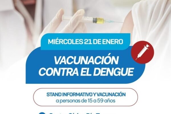 Mañana miércoles 21 se llevará a cabo una jornada de vacunación contra el dengue en el Centro Cívico de Río Tercero.