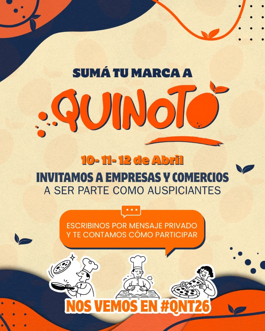 Quinoto 2026 se perfila así como una nueva oportunidad para que empresas y comercios posicionen su marca y formen parte de uno de los eventos más esperados del calendario gastronómico regional.